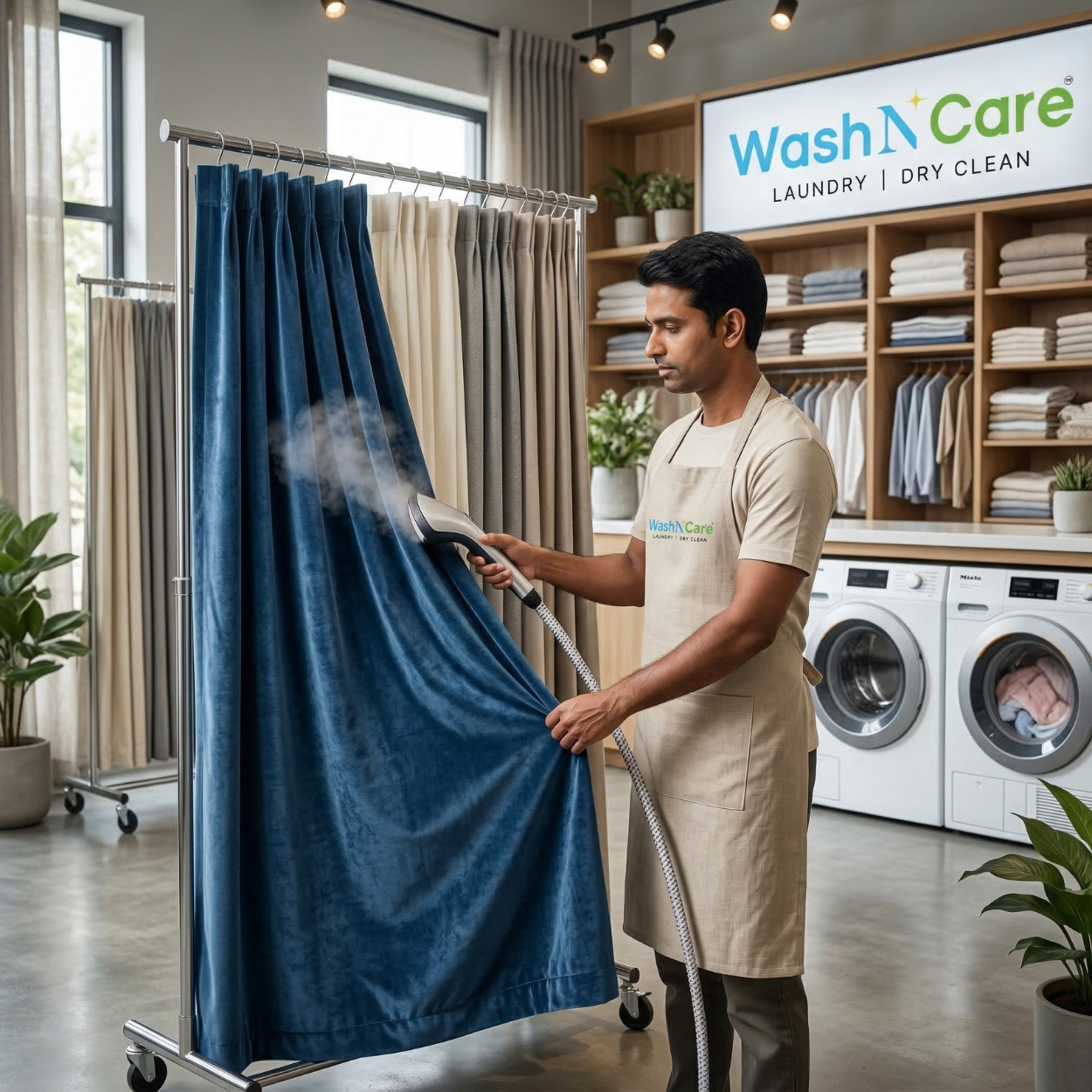 At Wash & Care, we provide professional curtain cleaning services designed for convenience, quality, and complete fabric care. Our experienced team uses advanced cleaning methods and eco-friendly solutions to ensure every curtain is cleaned safely and returned fresh. With reliable pickup and delivery, we make curtain cleaning simple, fast, and completely hassle-free.