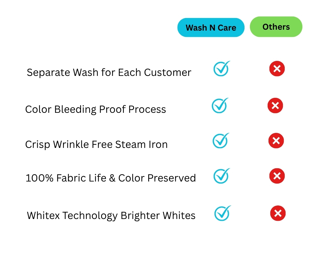 At Wash N Care, cleanliness goes beyond just removing dirt. We provide a hygienic laundry service that prioritizes your health and fabric safety.